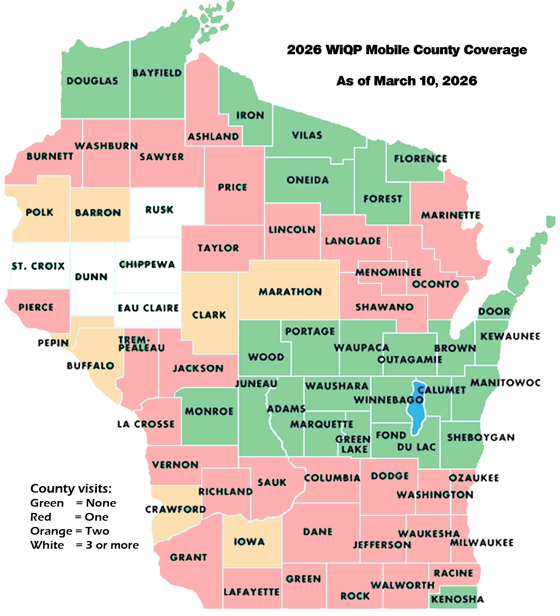 Given the number of counties we will be activating, some of the county activations will be very brief (10 min). These Pop-In counties include: CRA, LAF, DAN, JEF, DOD. If those are of interest to you, keep an eye on the Mobile Tracker.